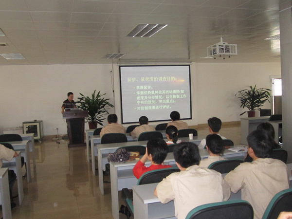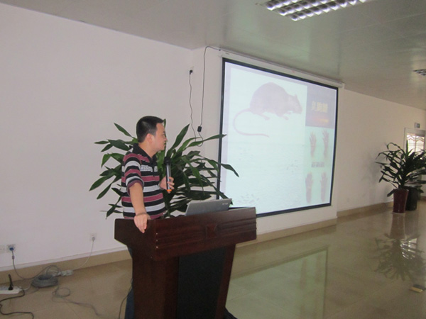 受大型外資企業(yè)大海糧油(防城港)有限公司邀請,2011年11月8日康凈公司派出技術副總監(jiān)古凡煜先生到該企業(yè)講授病媒生物防制專業(yè)理論知識。圖為古凡煜副總監(jiān)在會上授課